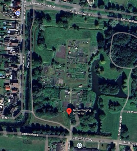 De volkstuinen liggen aan de Somerlustweg 54 G 9645GB Veendam.